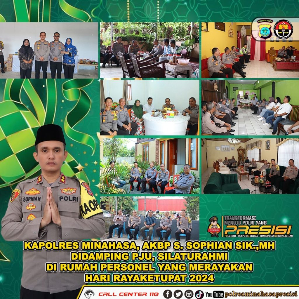 MINAHASA – Dalam semangat toleransi dan kerukunan antarumat beragama, Kapolres AKBP S. Sophian, SIK., MH, beserta Pejabat Utama Polres Minahasa, menjalankan tradisi silaturahmi ke rumah personel Muslim sebagai bagian dari perayaan Hari Raya Ketupat, Rabu (17/4/2024).