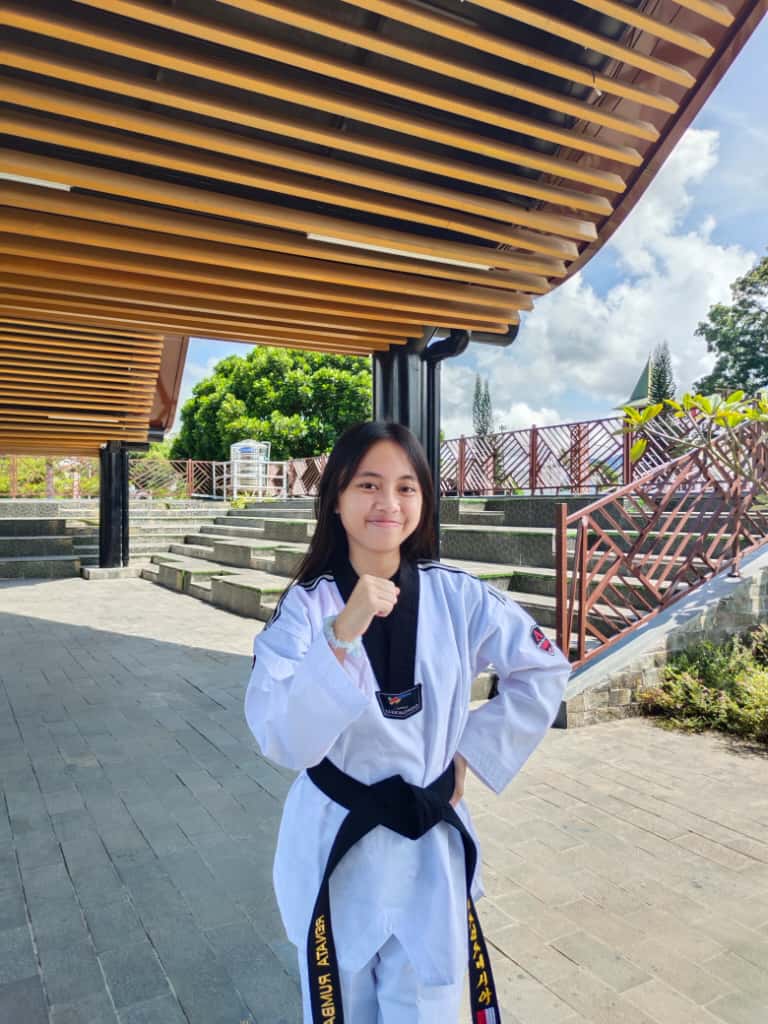 “Baik itu belajar, latihan, maupun bermain, kita harus bisa mengatur waktu sebaik mungkin,” ungkap atlet Taekwondo ini.