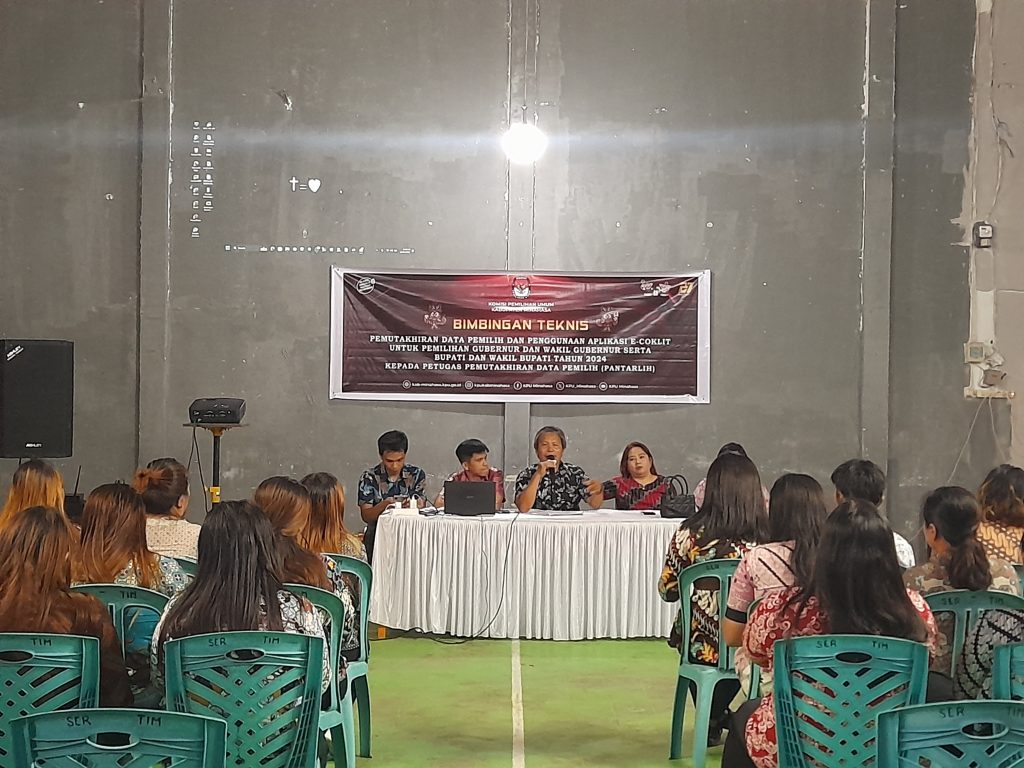 TERBERITA.COM, Minahasa – Panitia Pemilihan Kecamatan (PPK) Lembean Timur, menggelar bimbingan teknis (bimtek) pemutakhiran data pemilih dan penggunaan aplikasi E-Coklit untuk pemilihan Gubernur dan Wakil Gubernur serta Bupati dan Wakil Bupati tahun 2024 kepada petugas pemutakhiran data pemilih (pantarlih).