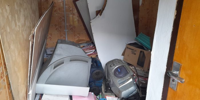 Di Jurusan Pendidikan Bahasa dan Sastra Indonesia (JPBSI) fasilitas MCK terpantau tidak terawat dan telah dijadikan tempat penyimpanan kursi.