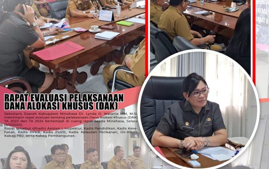 MINAHASA - Sekretaris Daerah (Sekda) Kabupaten Minahasa, Dr. Lynda D. Watania MM, M.Si, memimpin rapat evaluasi tentang pelaksanaan Dana Alokasi...