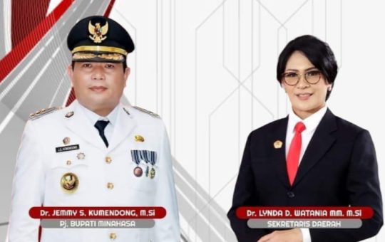 MINAHASA - Pejabat (Pj) Bupati Minahasa Dr. Jemmy Stani Kumendong MM, M.Si bersama Sekretaris Daerah (Sekda) Dr. Lynda D. Watania...